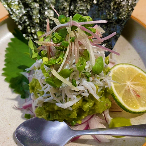 - しらすとアボガドのなめろう